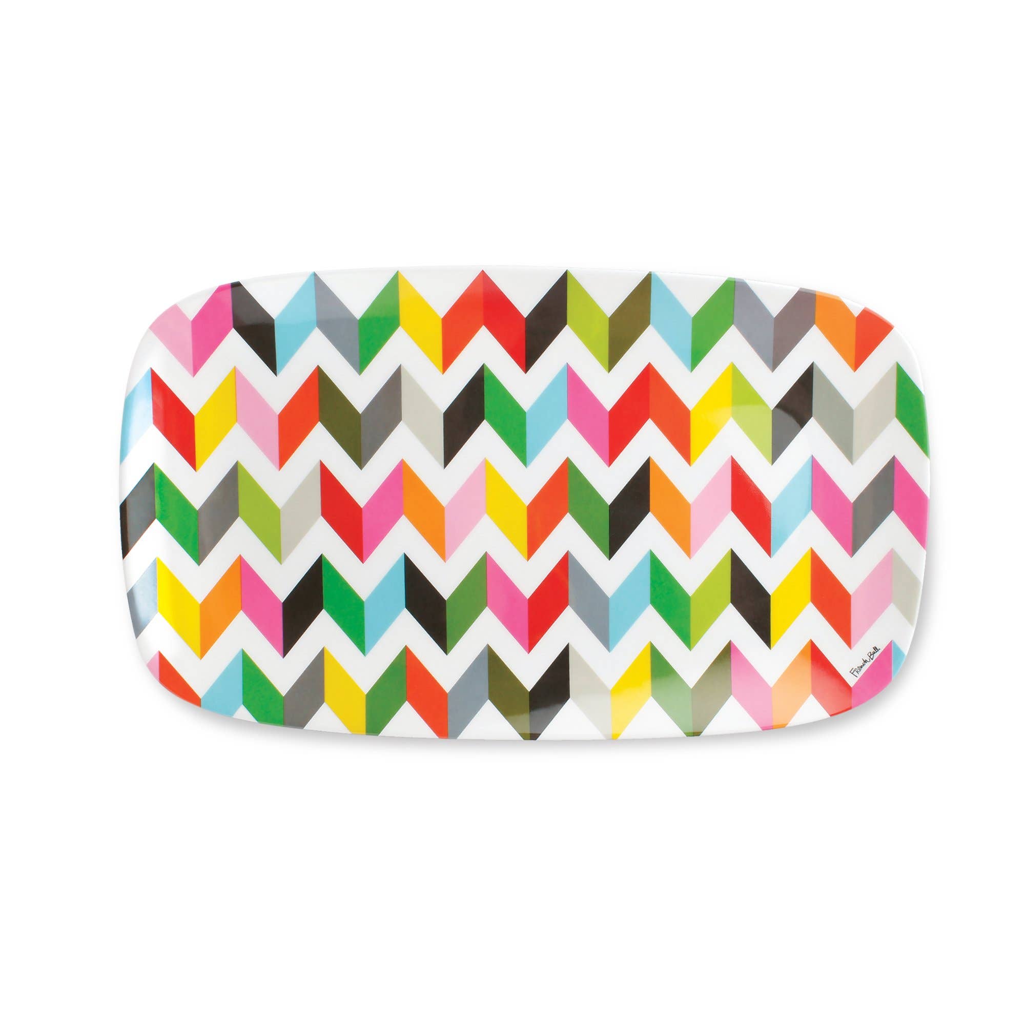 Hand-Carved Mango Wood Tray w/ Enameled Edge, Walnut Finish, Red