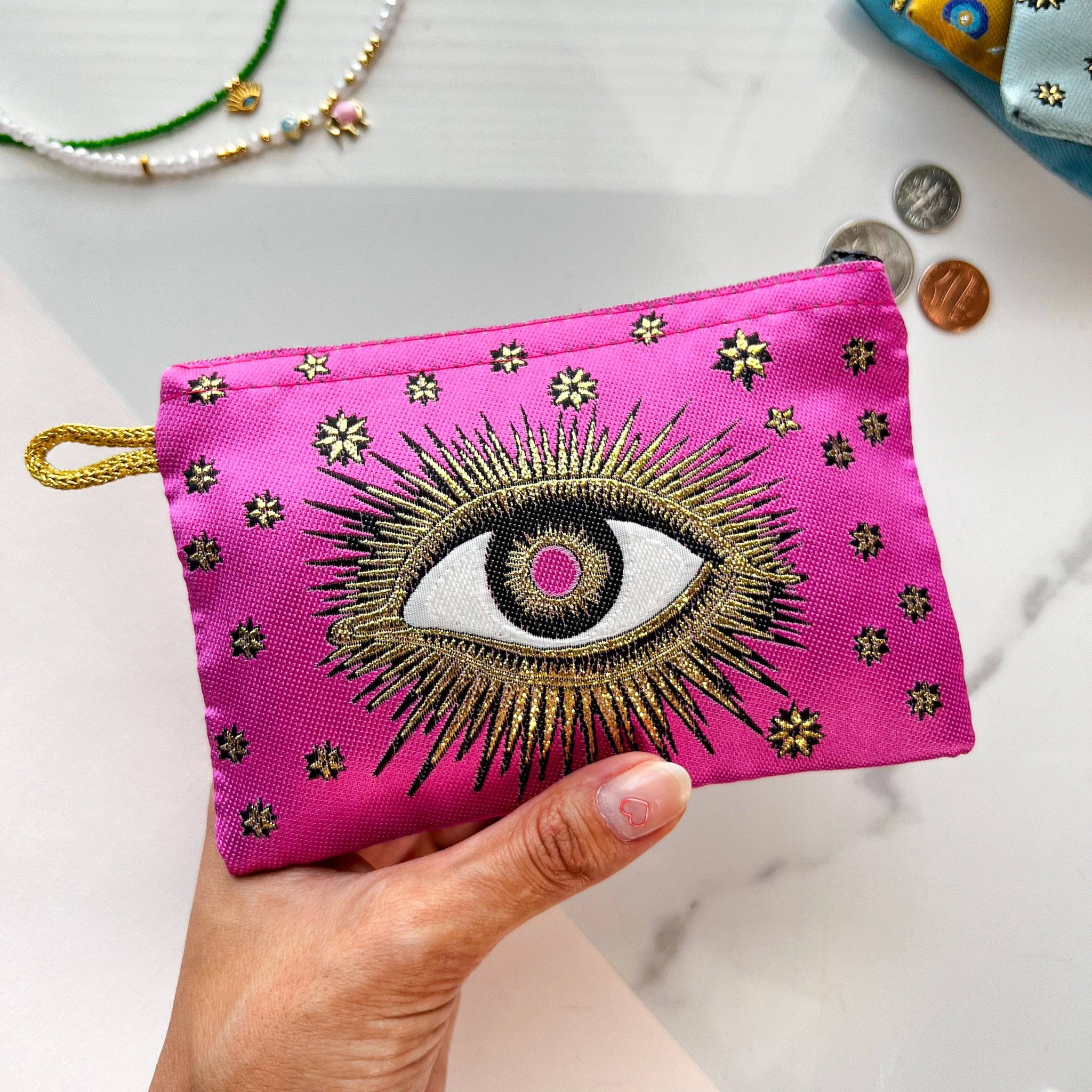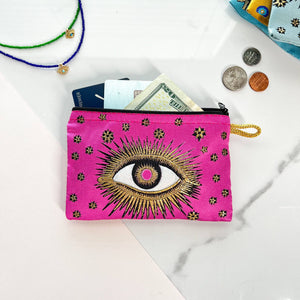 Pink Coin Purse, Evil Eye Pouch, Handmade Coin Purse