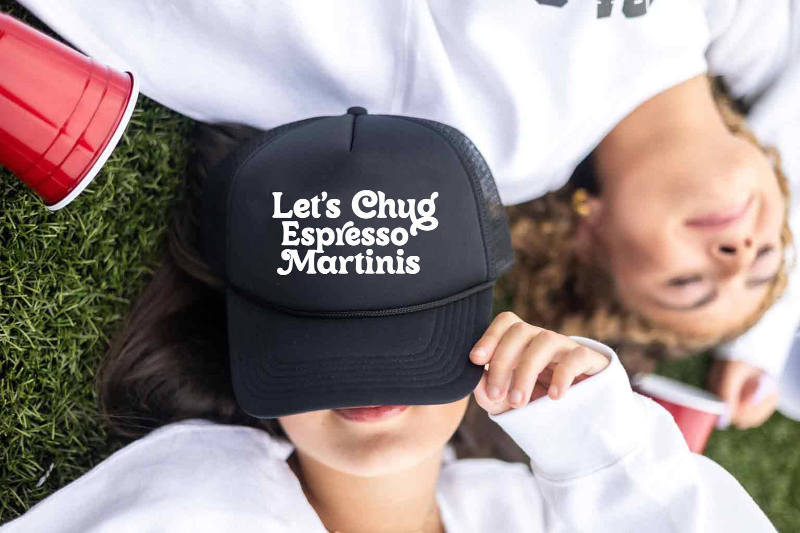 Espresso Martinis, Trucker Hat, Trendy Trucker Hats, Funny: Solid White / Black