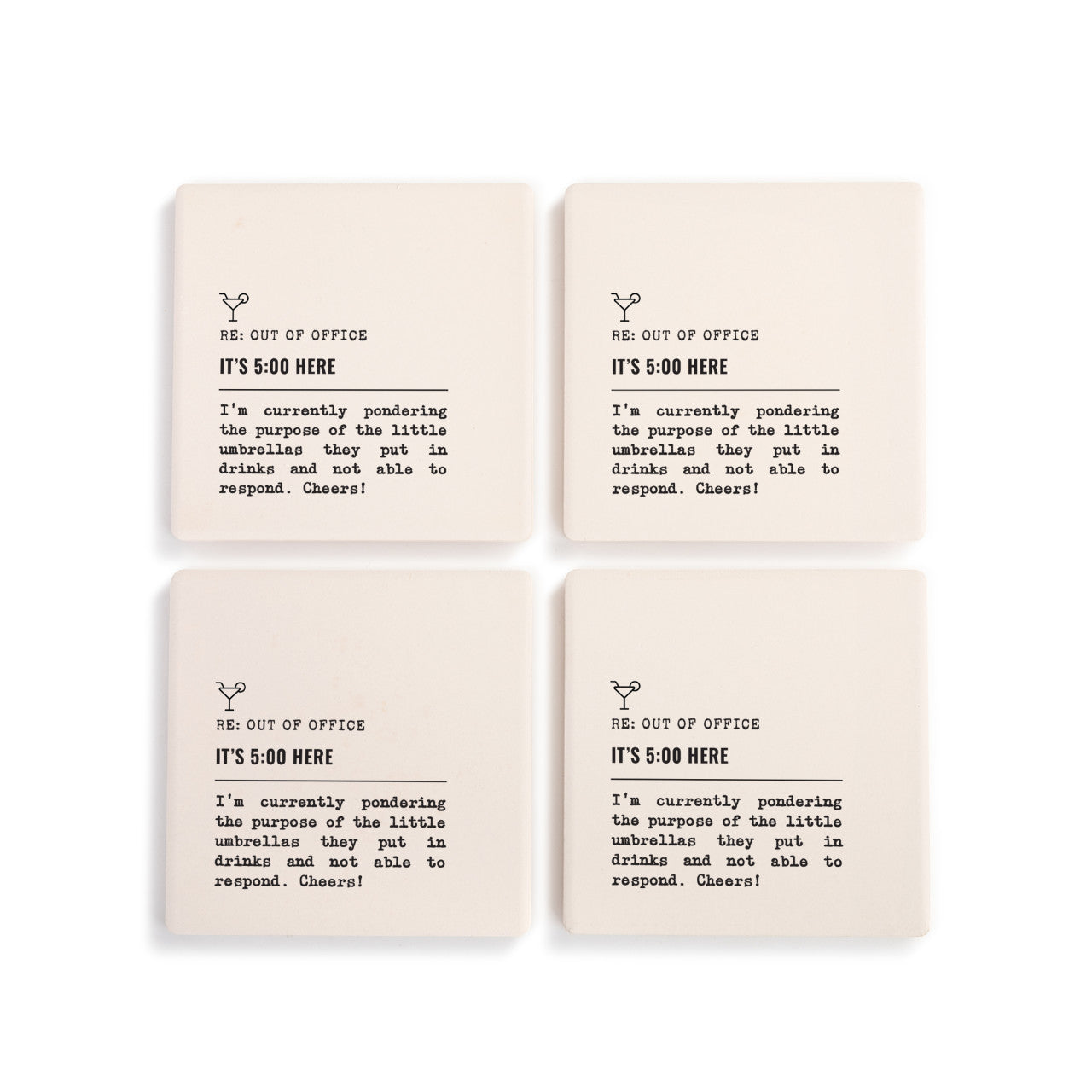 5 O'Clock Here Cheers Coasters Set of 4