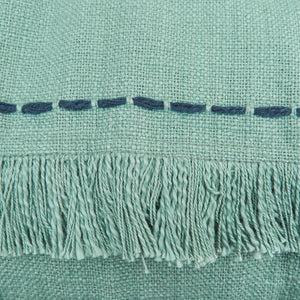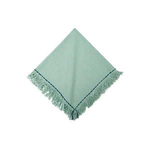 A light and cool Surf color tone and a contrasting pick stitch border in indigo give Cheryl Surf a fresh, bold style. Each 20" napkin is woven by hand with 100% cotton in a classic dobby weave and finished with a dynamic drawn edge that truly enlivens your meals.