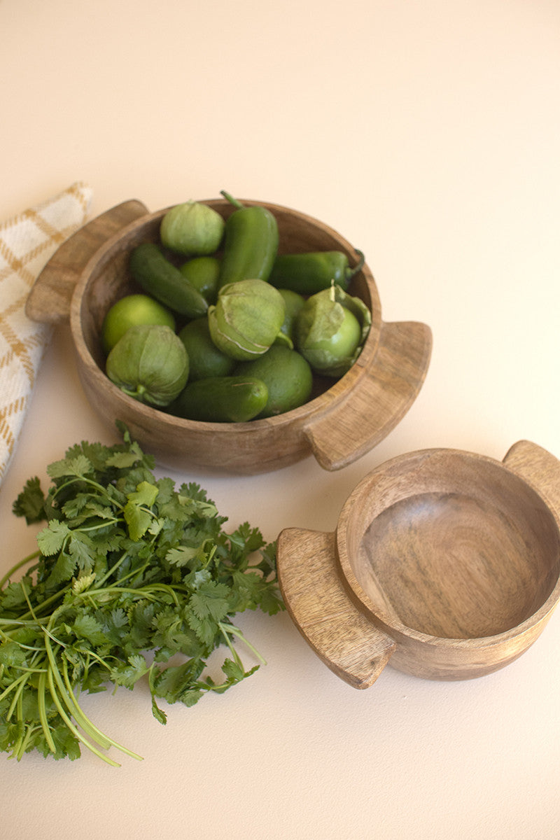 Mango Wood Salad Bowl with Handles - 2 Sizes