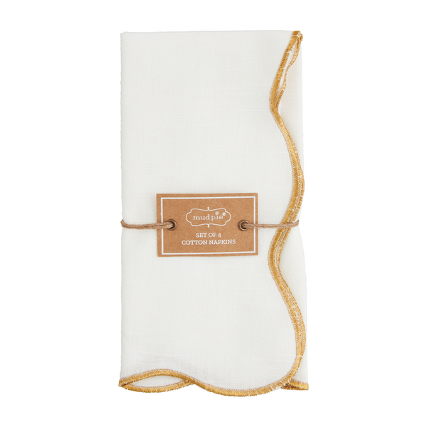 Gold Scalloped Edge Set of 4 Cotton Napkins