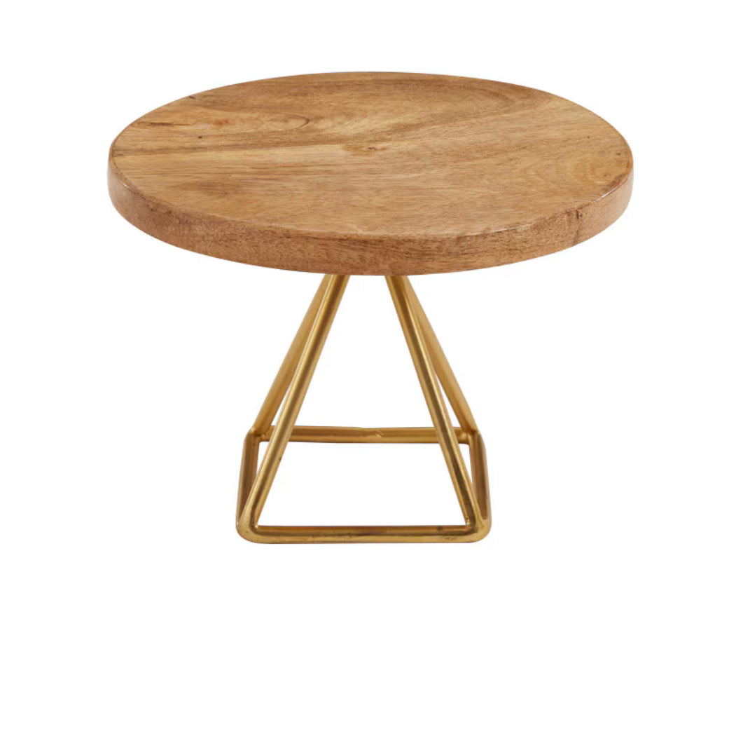 WOOD/GOLD TRIANGLE SERVING STAND SHORT (Split P)