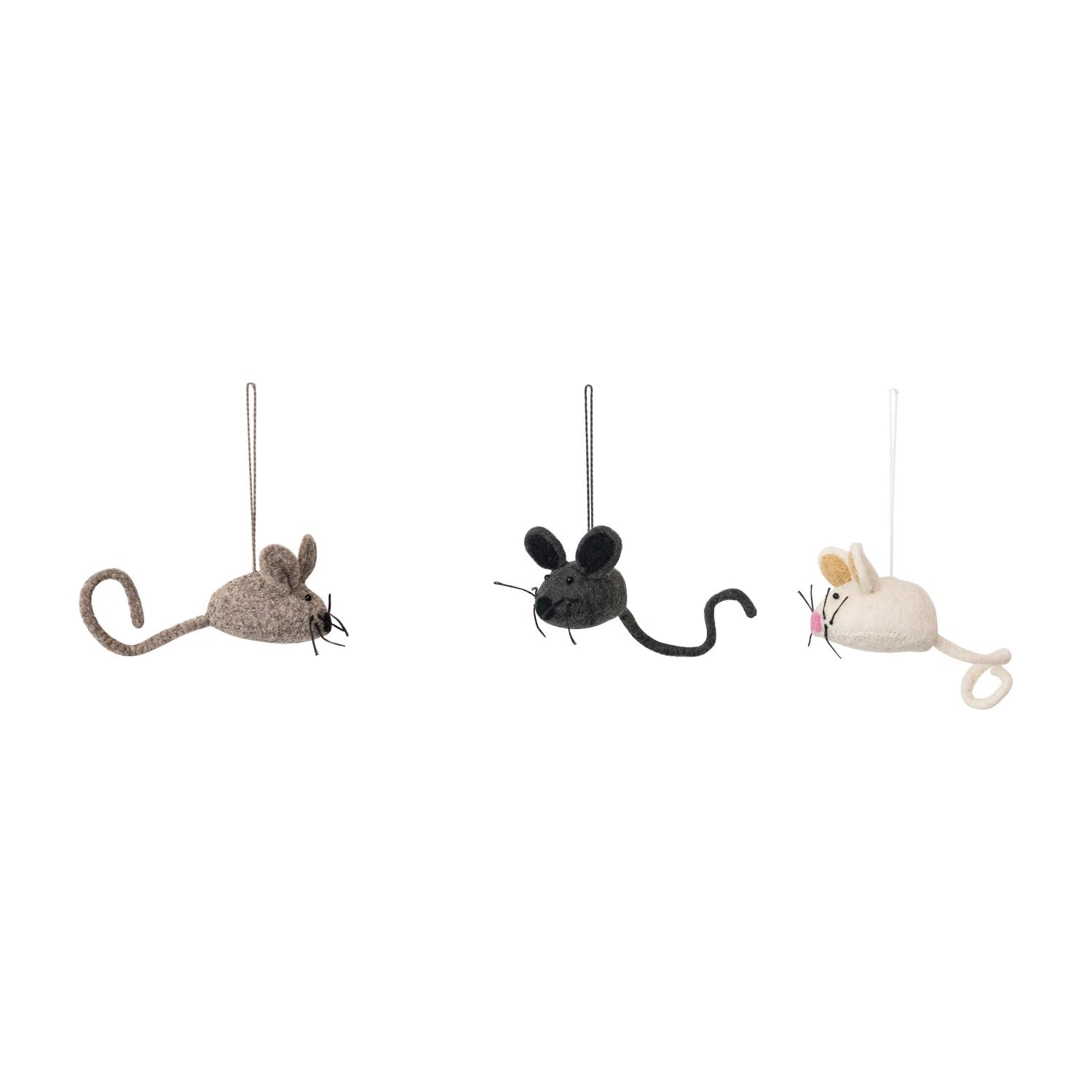 Wool Felt Mouse Handmade Ornament - 3 Colors