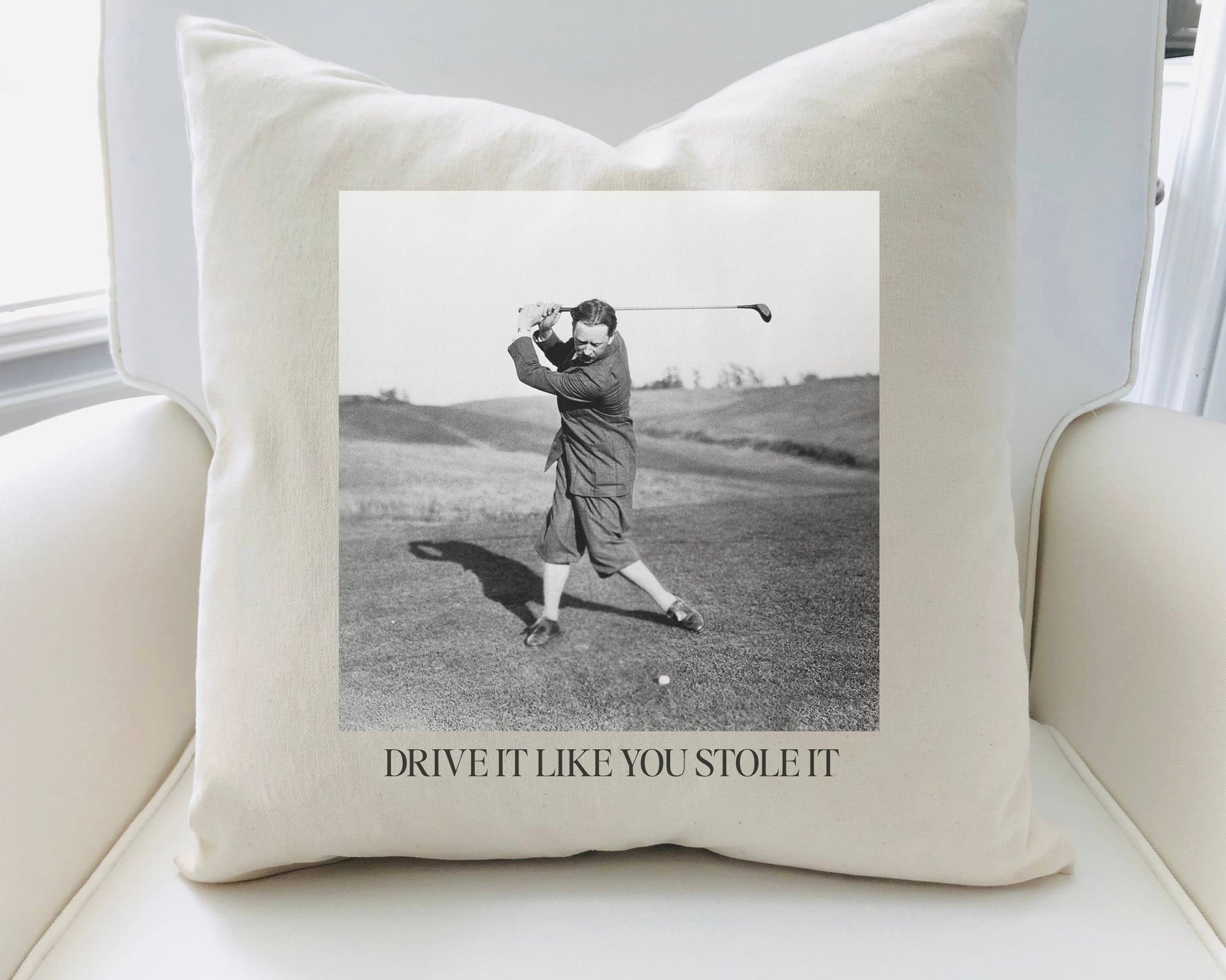 20x20 B/W Golf Photo Pillow - Drive It Like You Stole It