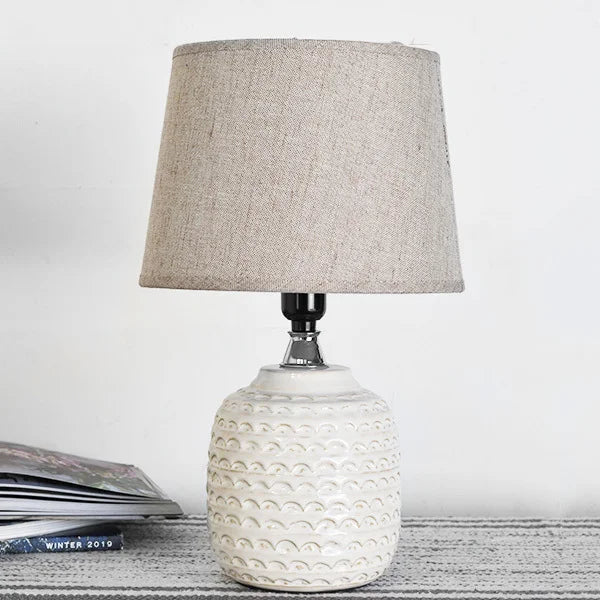 Navy & Natural Stoneware Table Lamp with Linen Shade