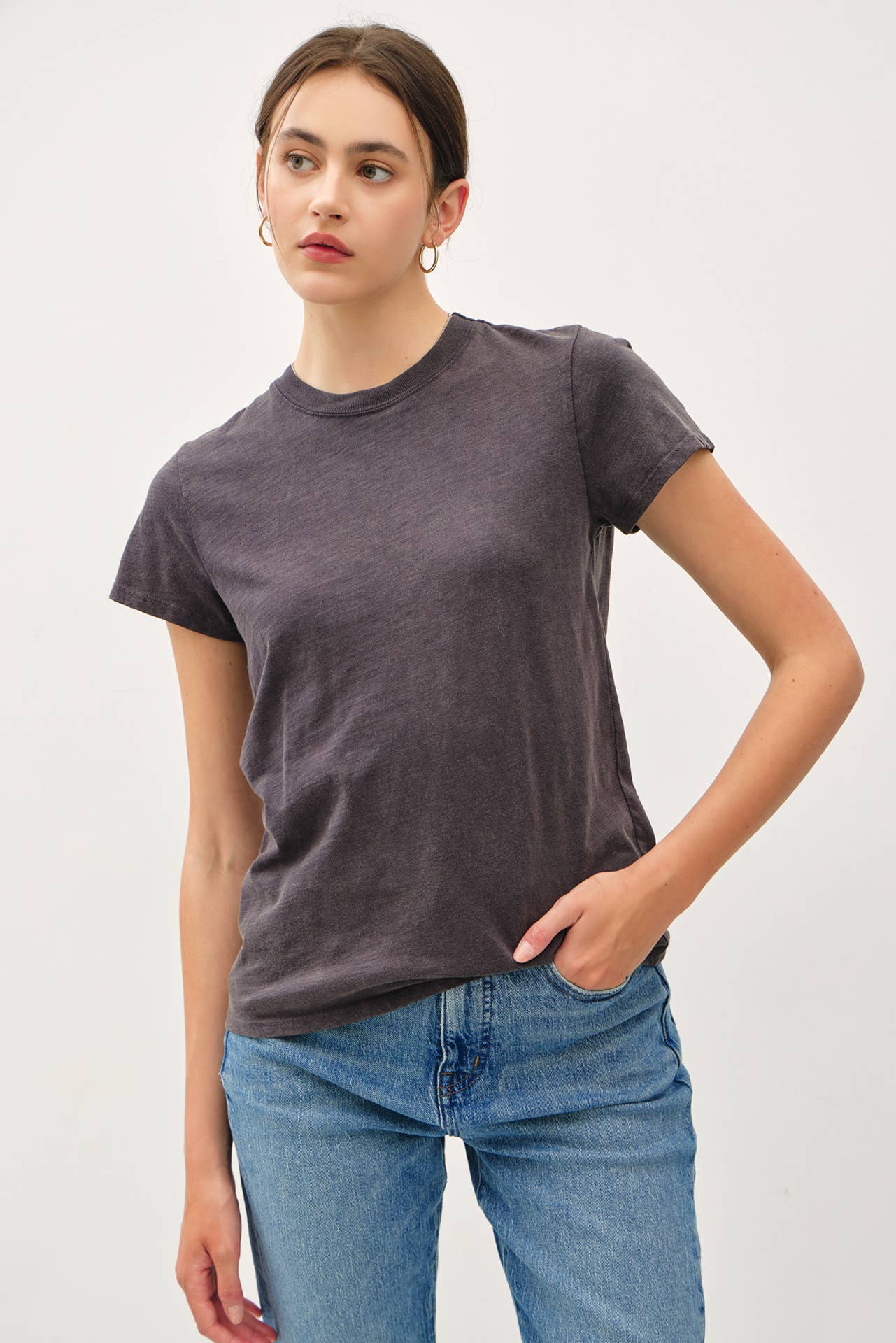 BASIC ACID WASH CAPPED SLEEVE TEE