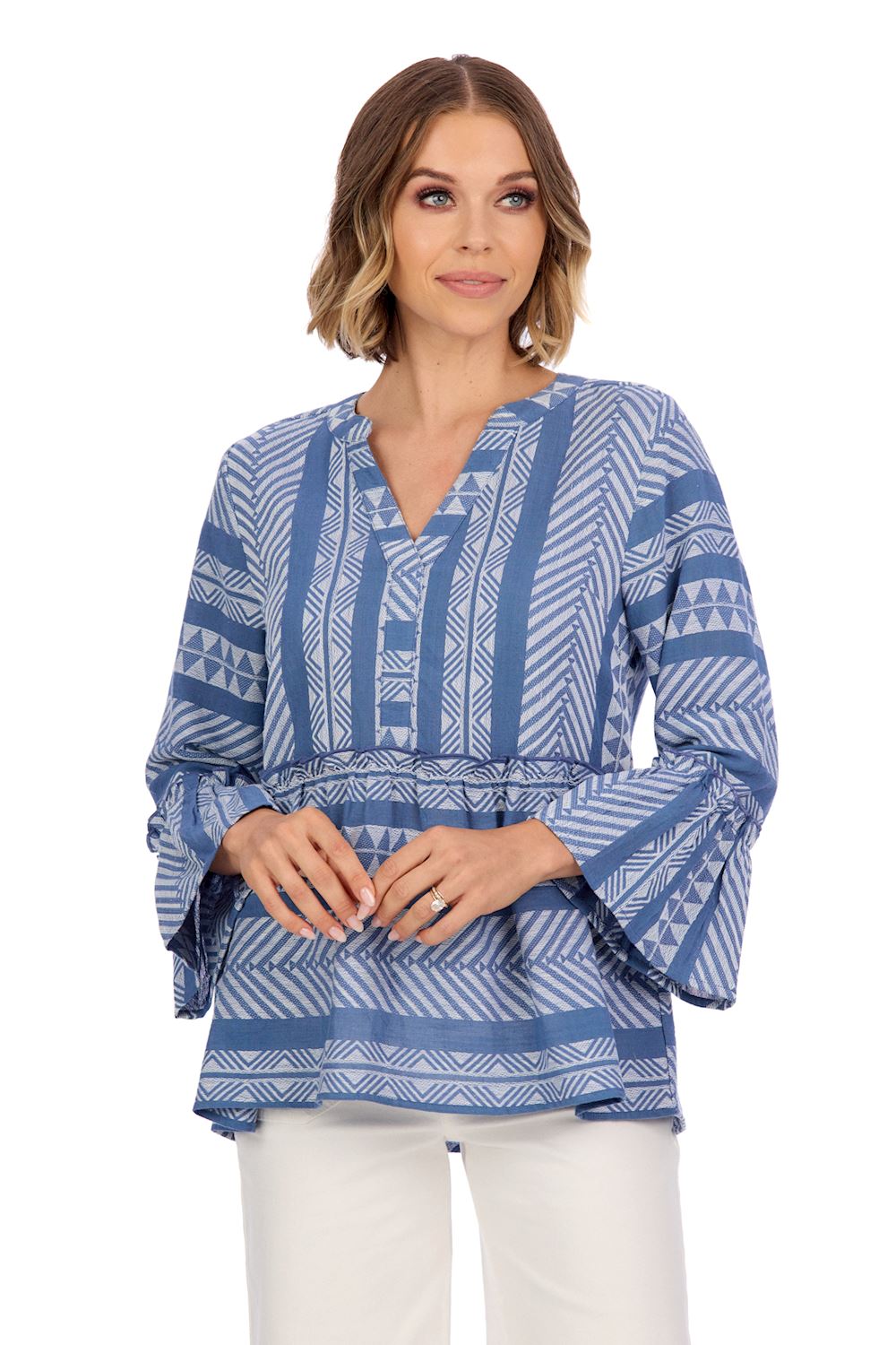 Chase Flounce Sleeve Top Blue