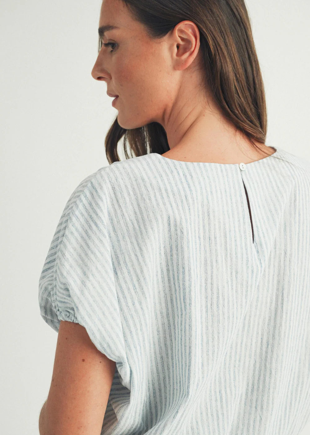 Cap Sleeve Double Tie Hem In Blue Stripe