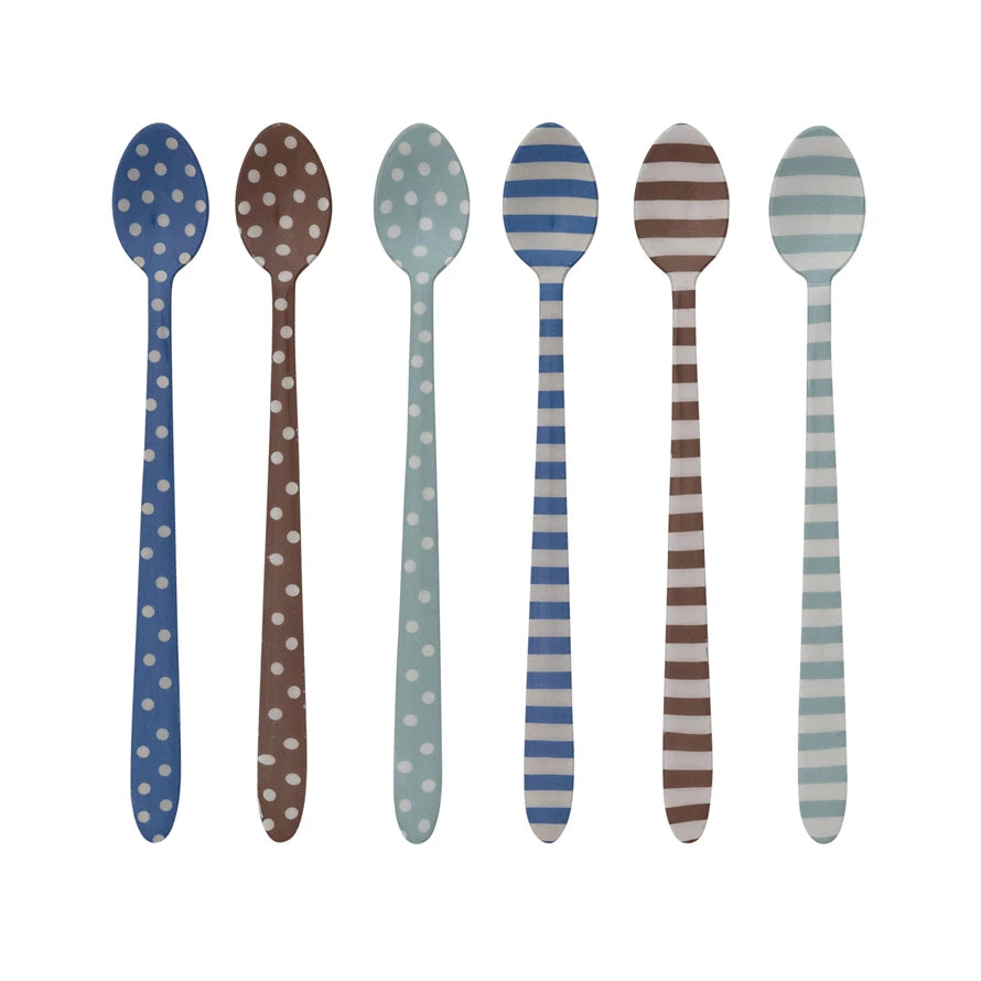 Enameled Stainless Steel Patterned Cocktail Spoon - 6 Styles