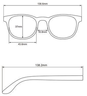 Devin Eye Candy Readers. Available in Rose, Grey, and Red. Features: Anti-Reflective coating to prevent glare Aspheric lenses to prevent distortion Spring hinges to maximize comfort Power range: 1/4 powers from +0.75 to +3.00, +3.50, +4.00, Rose color also available in +0.50, +4.50, +5.00, & +6.00 Matching case included Care instructions: Clean lenses with eyeglass cleaner and a clean microfiber cloth. Store in case when not in use. Lens Width: 46mm Lens Height: 37mm Bridge Distance: 17mm Arm Length: 138mm