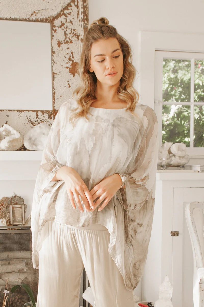 BREEZY, PRINTED 3/4 SLEEVE TOP
