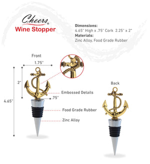 Cheers Gold Anchor Metal Wine Stopper - Elegant Vacuum Seal Reusable Nautical Ship Anchor Wine Bottle Stopper Airtight Leak Proof Bottle Topper Cork Plug, Home Decor Bar Tool Accessory Unique Gift