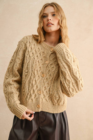 BUTTON FRONT CABLE KNITTED CARDIGAN