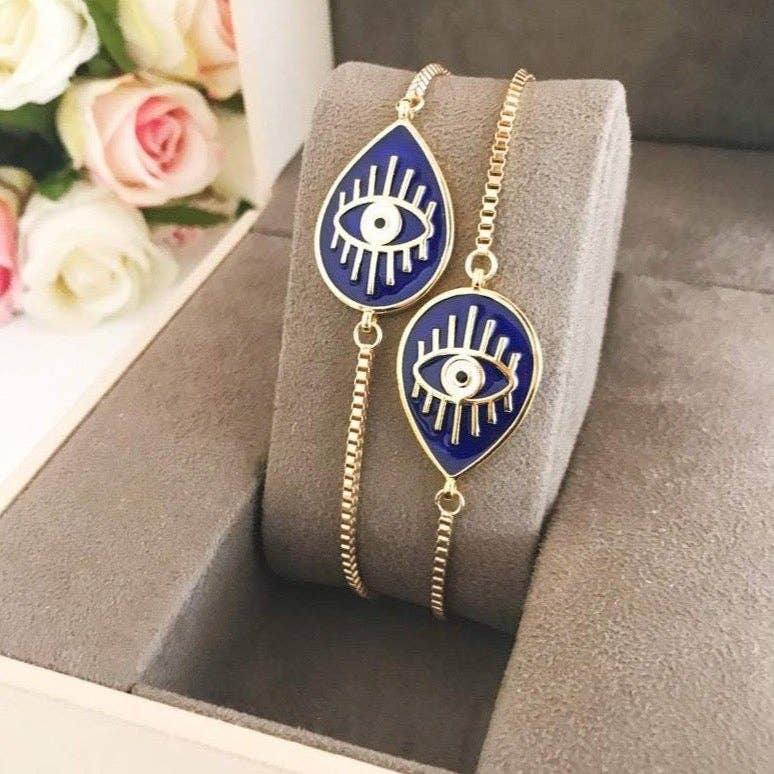 Blue Evil Eye Bracelet, Evil Eye Jewelry, Gold Adjustable Bracelet