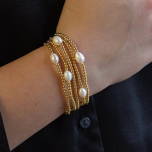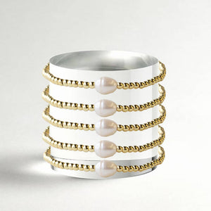 Gilded Gold Beaded Stretch Bracelets, Uno, Pearl