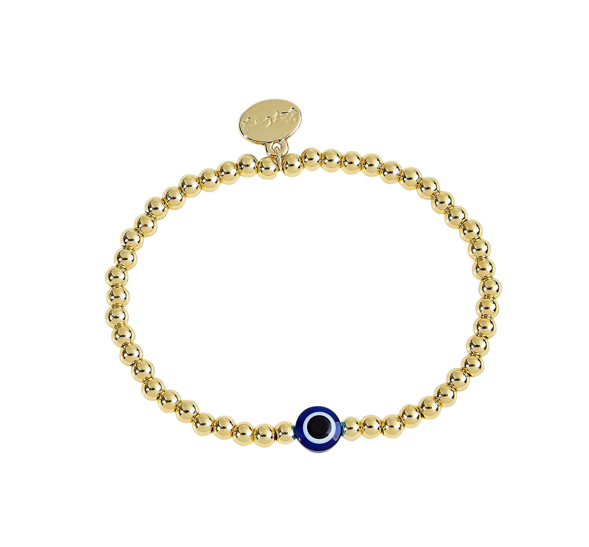 4mm Gold Ball H20 Resistant Dark Blue Evil Eye Glass Bead