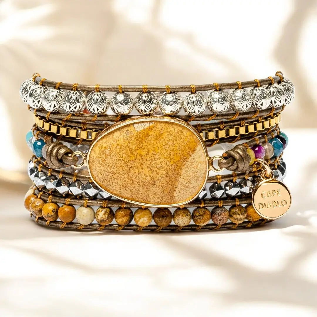 Gilded Gold Beaded Bracelets-Dot, Amazonite