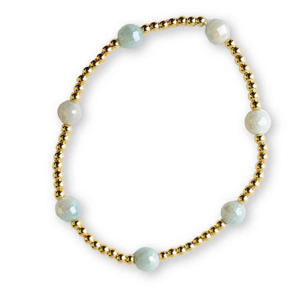 Lenny & Eva Gilded Dot Bracelets. This piece features delicate tarnish-proof gold beads paired with faceted gems in a soft, romantic spring palette. It offers both beauty and durability with its refined design and lasting gold finish. Perfect for anyone who appreciate subtle sophistication, this bracelet is ideal for layering or wearing on its own.  6mm faceted gemstones and 3mm gold beads * solid brass with durable, tarnish-proof gold plating * Listing is for one bracelet (MOQ 2)