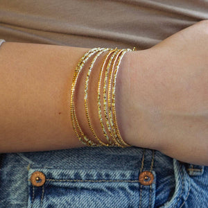 Classic and chic, the Lenny & Eva Norah Bangles are a must-have addition to your jewelry collection.  Featuring delicate glass beads in soft, versatile hues, these adjustable memory wire bangles fit all wrist sizes, offering timeless style for any occasion. With glass 2mm Miyuki beads -listing is for one bangle (MOQ 2)