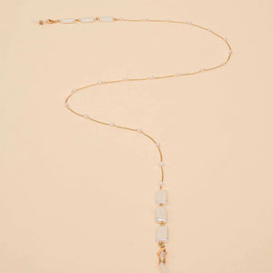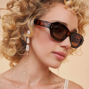 This sunglasses chain with delicate pearl details is the perfect elegant eye-wear accessory for those days when the sun just won’t make up its mind! With a sweet little piece of Powder packaging this chain is ready to gift!