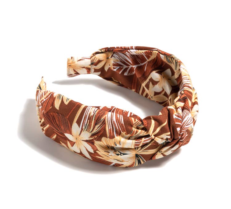 KNOTTED FLORAL PRINT HEADBAND, BROWN