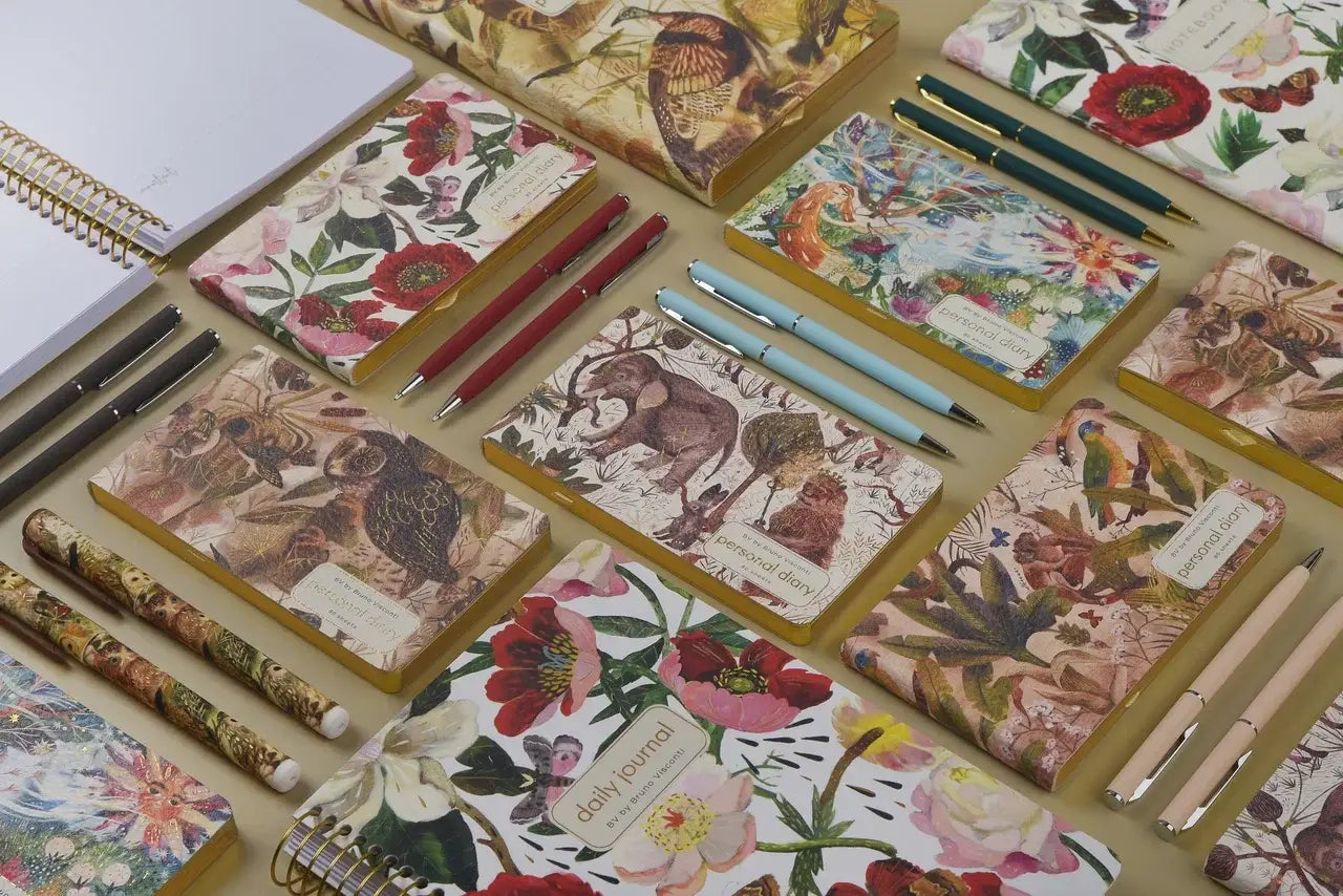 Our beautiful illustrations featured on a richly textured vegan leather cover. Featuring daily planner horizontal layout on 80 gm acid free paper with 80, 2 sided page and gilded ages. Also features a marking ribbon. 5.8 x 4.1