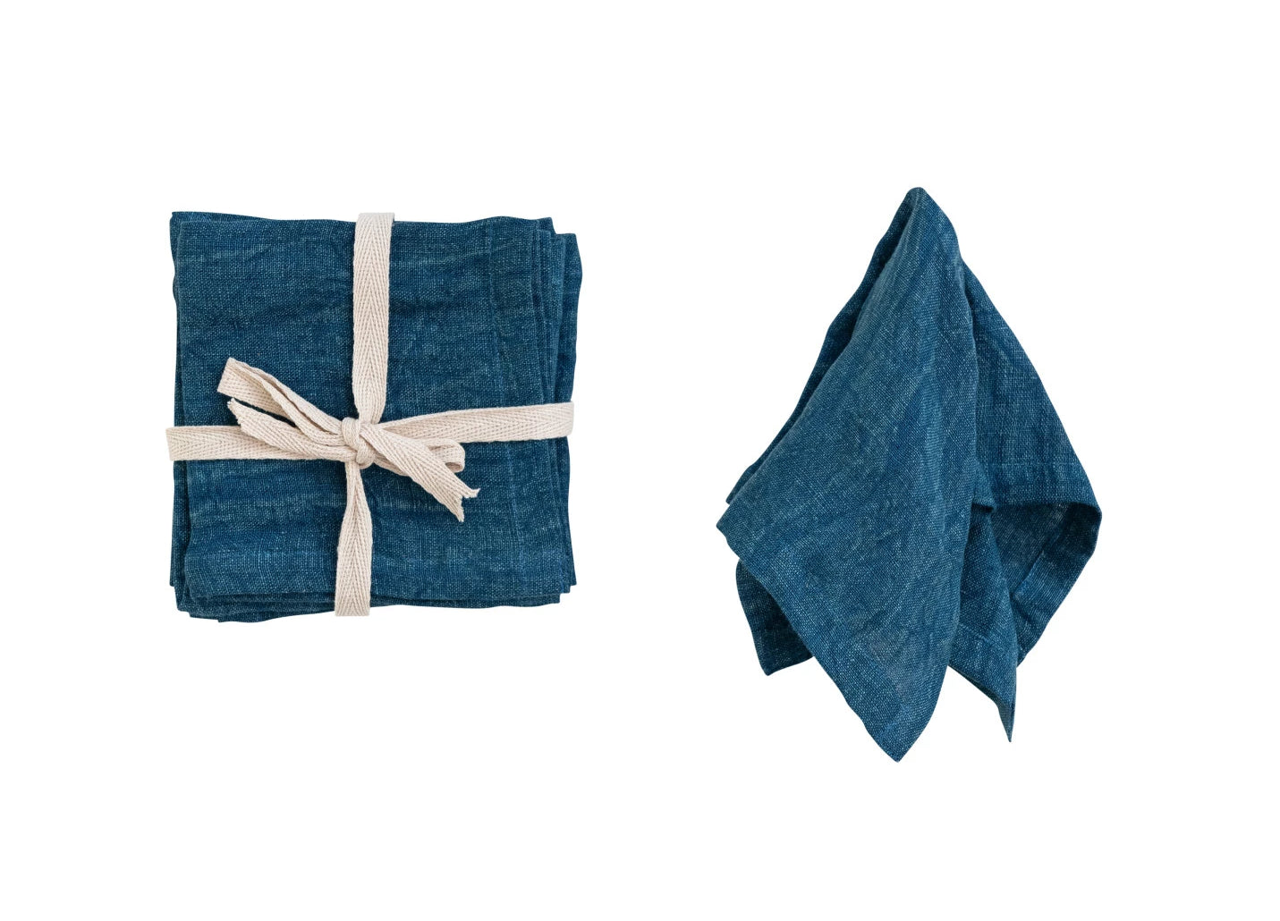 Blue Stonewashed Linen Cocktail Napkins - Set of 4