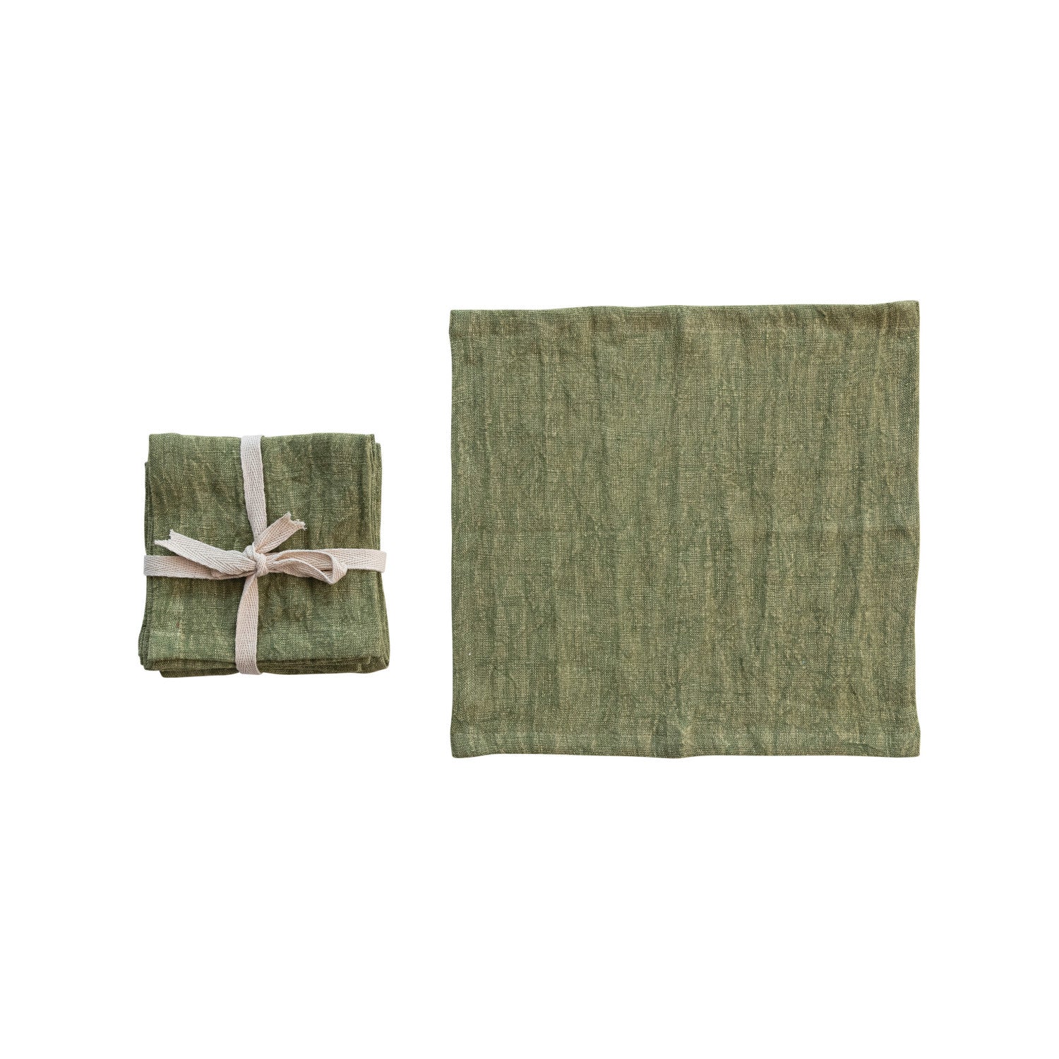 Green Stonewashed Linen Cocktail Napkins Set of 4