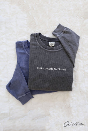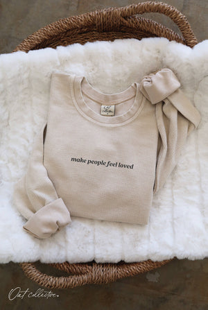 MAKE PEOPLE FEEL LOVED Cropped Thermal Vintage Pullover