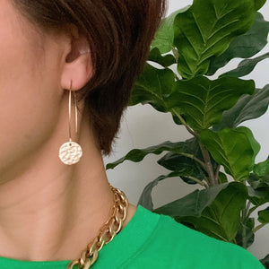 These Antique Moon Drop Earrings feature a fish hook with a unique antique finish disc for a stylish and lightweight look. Perfect for any occasion, their simple yet chic design is sure to elevate your look and make any ensemble stand out.
