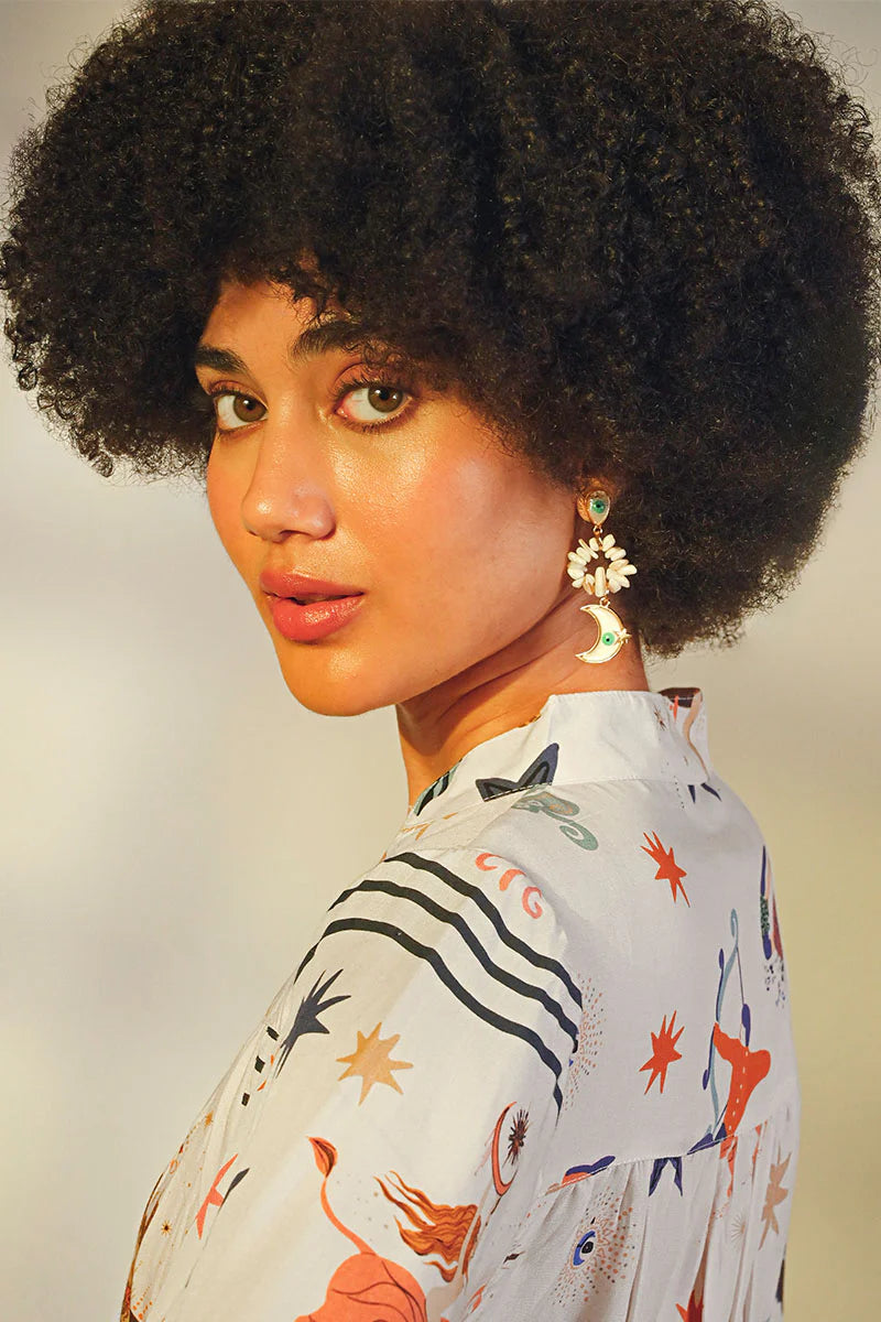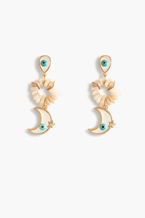 Handmade with care, these beaded earrings feature a captivating moon and mystic eye design, accented with natural agate stones. The natural color palette adds a touch of earthy elegance, while the secure back pin ensures a comfy fit all day long.