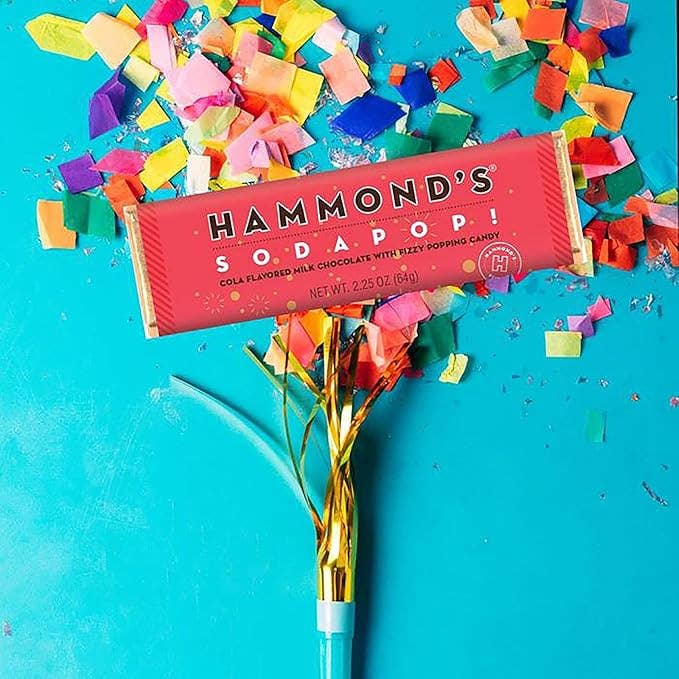Fizz meets nostalgia. The Soda Pop! Chocolate Bar is a retro thrill ride wrapped in creamy milk chocolate, with fizzy cola pop rocks that crackle and spark on every bite. It’s like sneaking a sip from a glass bottle at the roller rink—sweet, bubbly, and slightly rebellious.