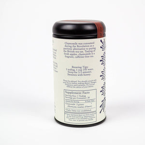 Description: The colonists steeped the dried flowers of chamomile as a tea for its gentle, soothing effects, and as a rinse for blond hair. “Camomile flowers, boiled in lye, are a good wash to the head, and comfort both it and the brain.” The English Physitian (1652) - N. Culpeper. Chamomile was consumed during the Revolution as a patriotic alternative to paying the British tea tax. Tasting of fresh apples, chamomile is a fragrant, caffeine-free tea.