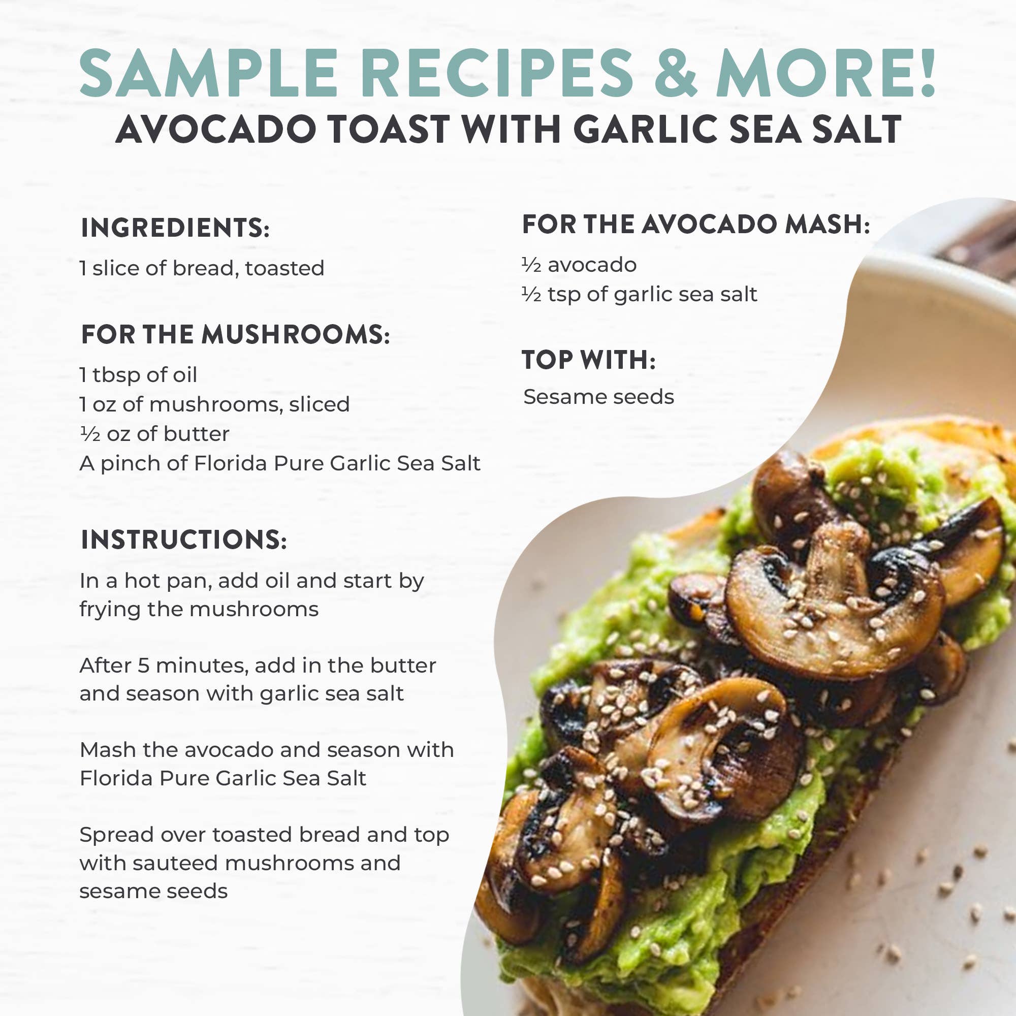 Our Garlic Infused Sea Salt combines the bold flavor of California garlic with the natural essence of sea salt, creating an irresistible seasoning for your culinary creations. This artisanal blend is crafted with care, offering a delicious and versatile addition to any kitchen. Features: - Made with 100% natural sea salt and premium garlic - Free from artificial additives and preservatives - Enhances flavor in meats, vegetables, pasta, and more - Ideal for grilling, roasting, and finishing dishes - Packed with 80+ essential minerals for taste and nutrition Usage Suggestions: - Grilling: Season steaks, chicken, and seafood before grilling - Roasting: Toss vegetables in olive oil and Garlic Infused Sea Salt for a savory finish - Pasta: Sprinkle over freshly cooked pasta or mix into sauces for added flavor People also searching for : flavored sea salt, garlic seasoning, gourmet salt, herb-infused salt, cooking salt, rubs, bbq