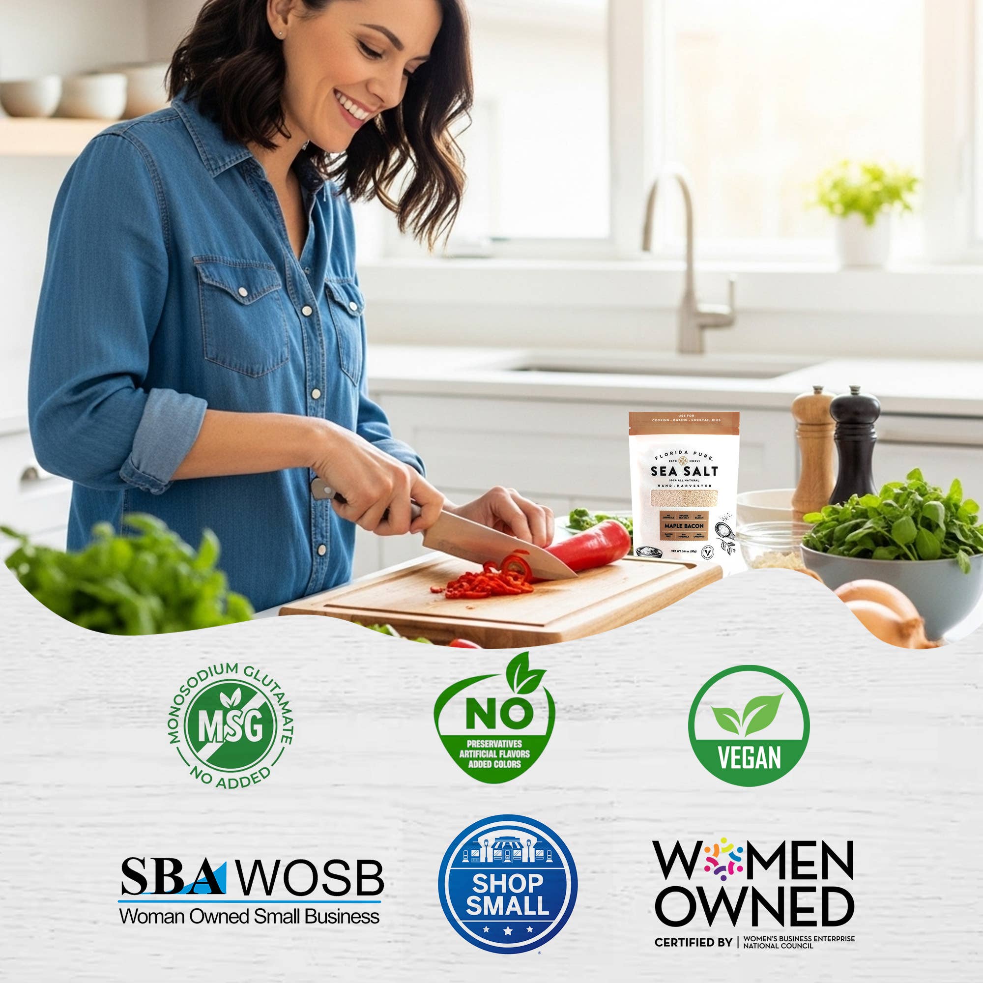 Indulge in the delightful blend of sweet maple and smoky bacon flavors with our Maple Bacon Infused Sea Salt, crafted to be entirely vegan. This seasoning offers the beloved taste of bacon without any animal products, perfect for enhancing plant-based dishes or reducing fat intake. Features: - Premium sea salt infused with natural maple sugar and hickory smoke flavor - Versatile seasoning for roasted vegetables, baked potatoes, and scrambled eggs - Ideal for salads, popcorn, avocado toast, and more - Perfect for grilling salmon, roasting cauliflower, and sauteing Brussels sprouts People also searching for : Maple sea salt, Bacon flavored seasoning, Vegan friendly spices, Gourmet salt blends, Infused sea salt, bbq sauce, barbeque sauce, flavored sea salt, herb-infused salt, gourmet salt, cooking salt, seasoning blends, barbeque sauce, finishing salts, cocktail salt, vegan seasoning, small batch food, giftable food, Florida made, chef favorite, holiday, grilling, cocktail, gifting.