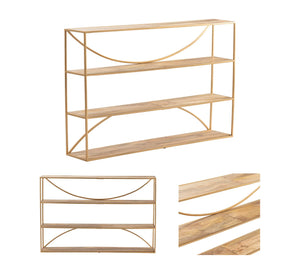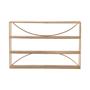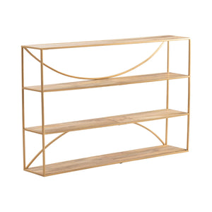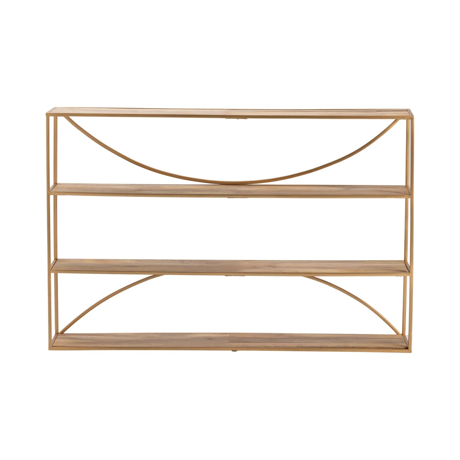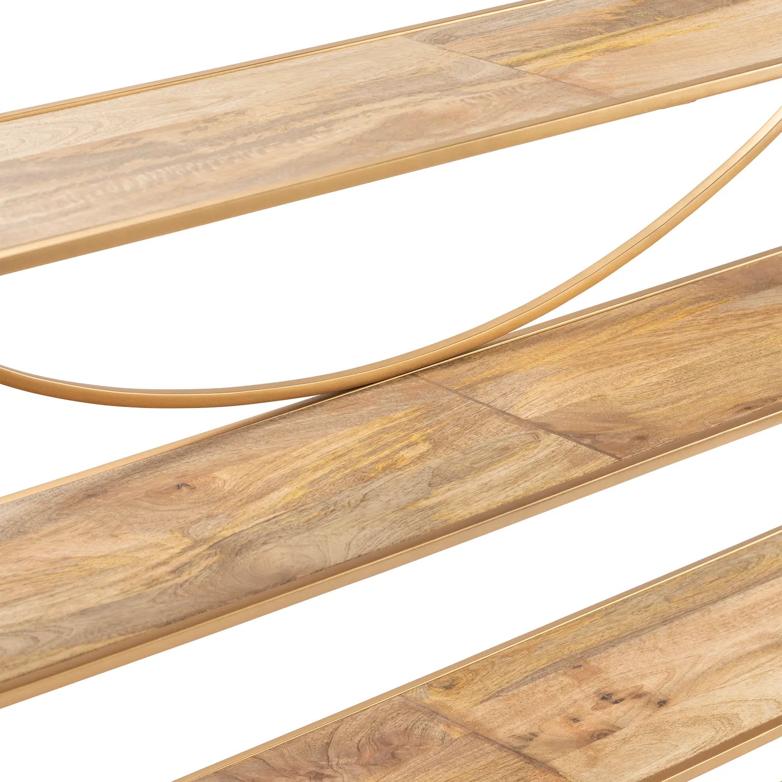 The Hammond Narrow Console warm, medium brown, mango wood shelves are cradled on the graceful curves of the gold crescent braces of this space saving, narrow shelf. Perfect for a room where floor space is minimal, this console shelving has 10-inch depth shelves that will hold multiple items while saving your floor space. Perfect for books as well. Suitable for various rooms of the house.