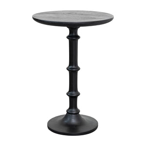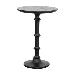 This contemporary side table features a sculptural solid wood silhouette with textural grain detail. Display in a living space of any style from vintage to eclectic. Made from 100% mango wood.