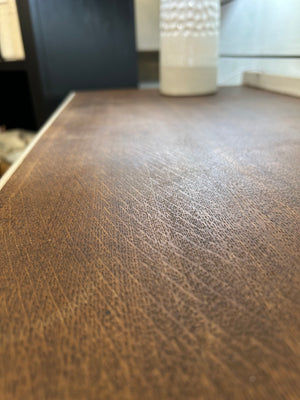 This vintage armoire features a hand-painted finish with Annie Sloan Old White, enhanced by clear and dark wax to achieve a sophisticated aged look. The top surface is well-preserved and sealed for protection. Dimensions are 45.5"H x 31.5"W x 17.5"D.