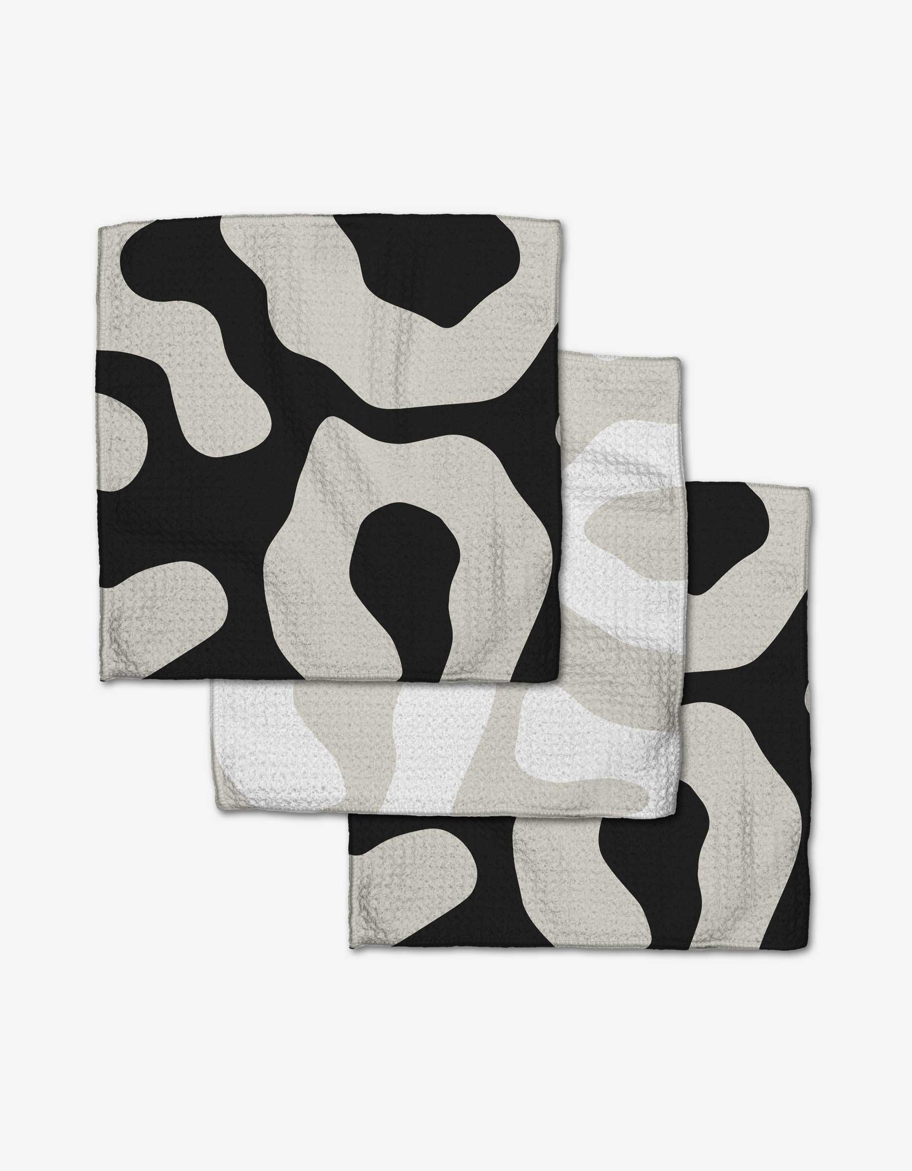 Geometry dishcloths provide super cleaning and next-level absorbency when drying dishes and surfaces! Dishcloth Set - 3 pack | 10" x 10" | Made from recycled polyester | Weight: 320 g | Single-sided print | Hang loop | Waffle weave construction | Quick-drying