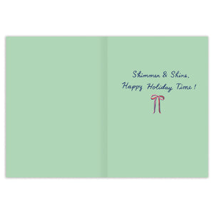 Inside verse: shimmer & shine, happy holiday time! • Gold foil details • Illustrated by Emily Taylor • Size: 4.5" x 6.25" • Includes with Brown Kraft envelope • Printed in the USA • Printed on high-quality FSC-certified 10% post-consumer waste recycled paper • About the artist: Emily Taylor draws and daydreams from her studio in a tiny town north of Toronto, Canada. Her work is best known for its feel of modern nostalgia, its painterly linework and joyful colors. Emily is inspired most by walks in nature and slow wanderings of antique markets.