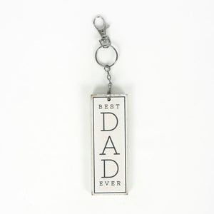 Father's Day gift, right this way! This reversible wood keychain is primarily designed for your need for her special day. It measures 1.5" X 4.25" X .25" and says "BEST DAD EVER" on both sides.