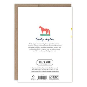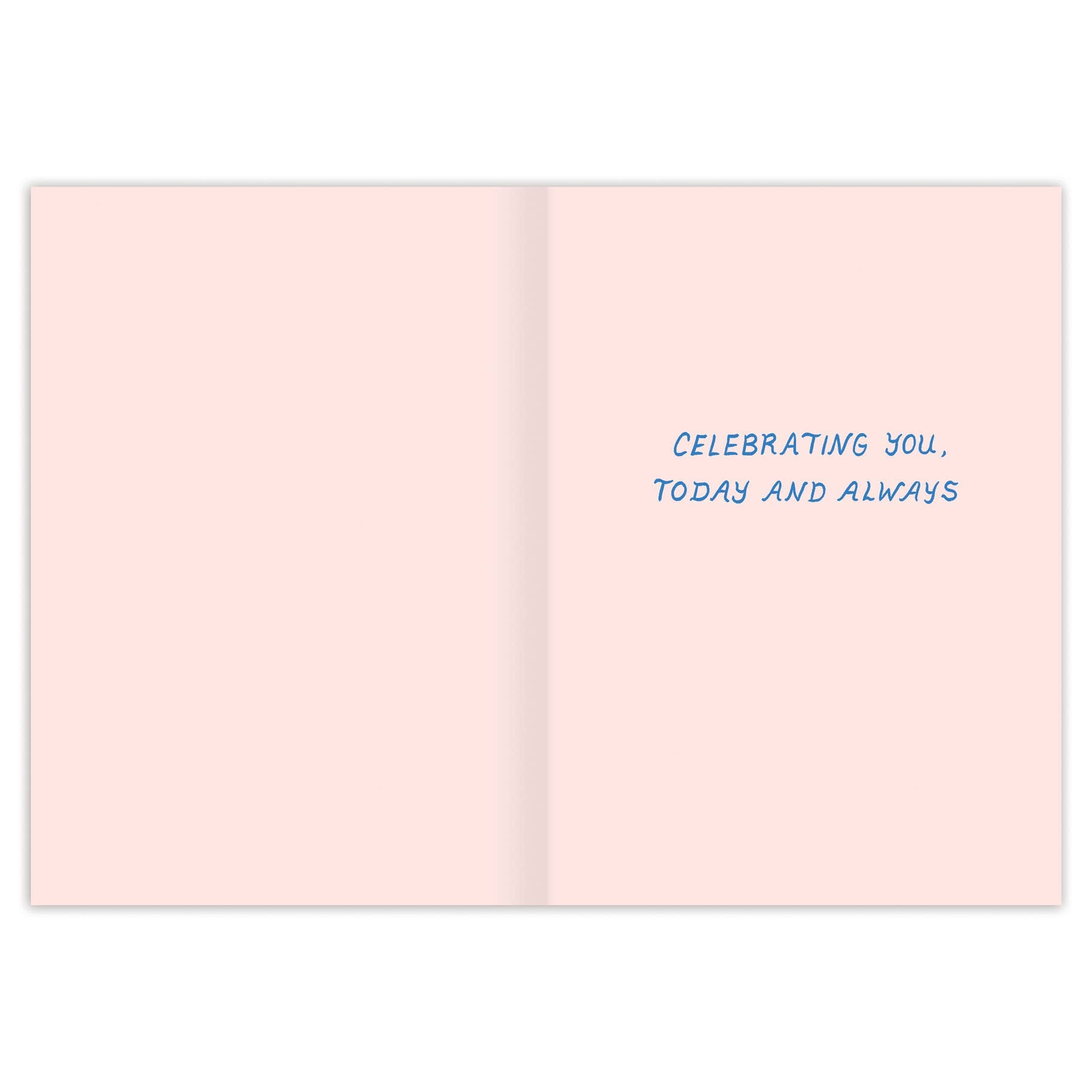 Inside verse: Celebrating you, today and always • Gold foil details • Illustrated by Emily Taylor • 4.5" x 6.25" • Paired with a Kraft envelope • Printed in the USA on beautiful FSC-certified 10% post-consumer waste recycled paper.