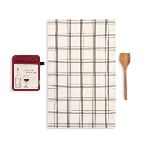 Will Cook for Wine Hot Pad, Towel, and Spatula Set
