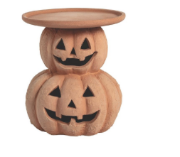 Pumpkin in Pilgrim Hat LED Light Up Ceramic Sitter