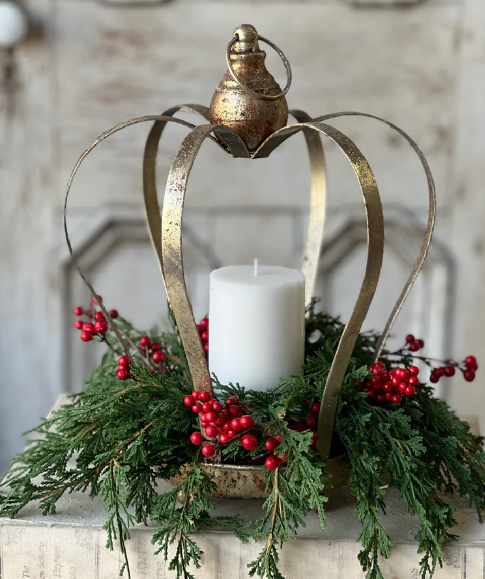 The Diadem Holders add a regal air to displays with their crown-like silhouette and distressed gilded finish.  Available in two sizes/styles, each sold separately.