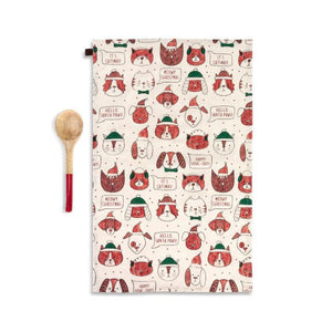 Prepare for Christmas with this cotton & linen kitchen towel & mango wood spoon set. Thoughtfully crafted with paper, this white gift set is the ultimate surprise your favorite dog lover/cook will adore!