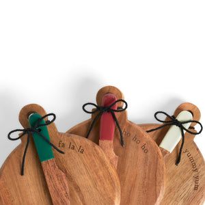 Set the holiday table in style with one (or all) of these mini acacia wood serving boards. A great setup to serve your favorite cheeses or munchies on, serve tasty treats in style, and spread cheer!
