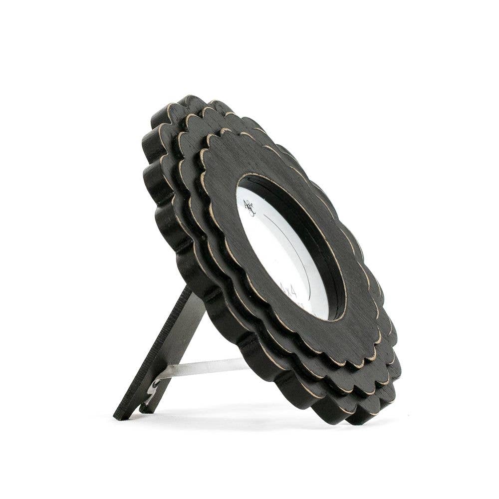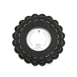 12089 - 8x8x1 wood scallop photo frame (ROUND) bk (4x4)